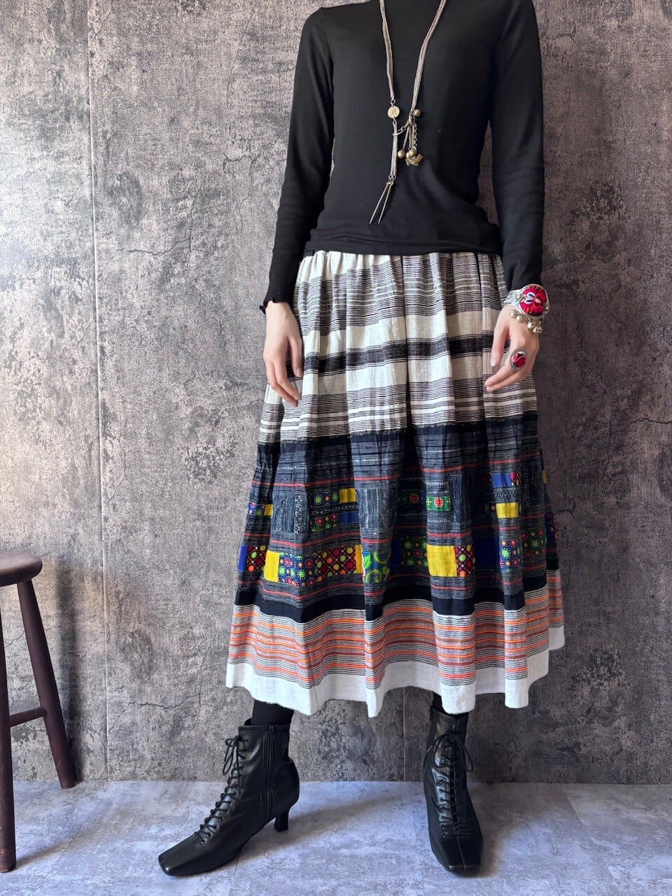 モン族の巻きスカートをリメイクした、ロングスカートです。