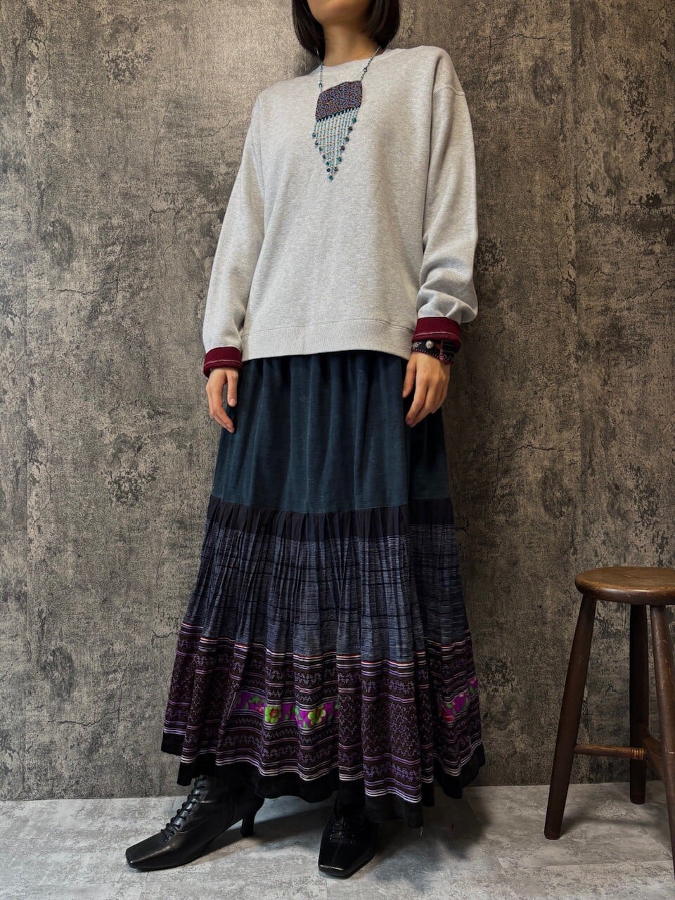 モン族の巻きスカートをリメイクした、ロングスカートです。