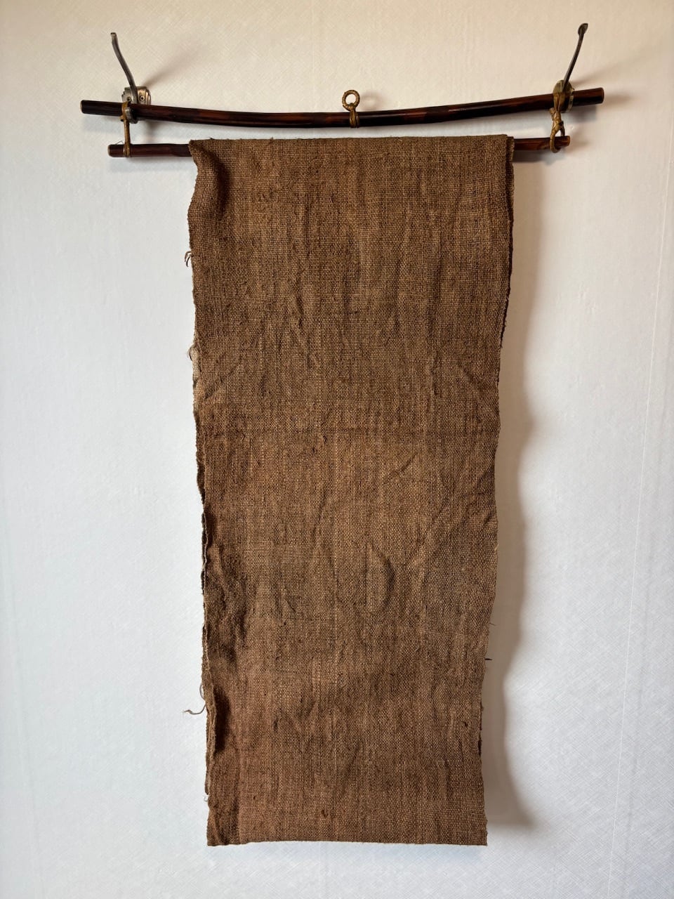 こちらの商品はヘンプの紐で織られたハンドメイドの草木染めヘンプ布です。