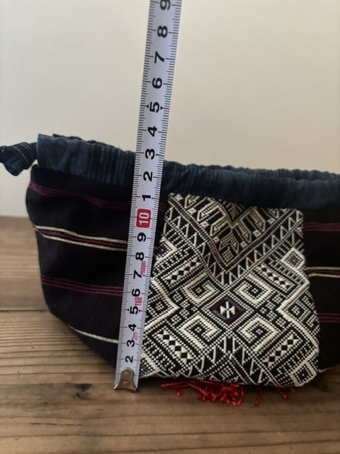 このバックに使用している生地は少数民族の村より直接買い付け、仕入れたものをオリジナルでリメイクしました。