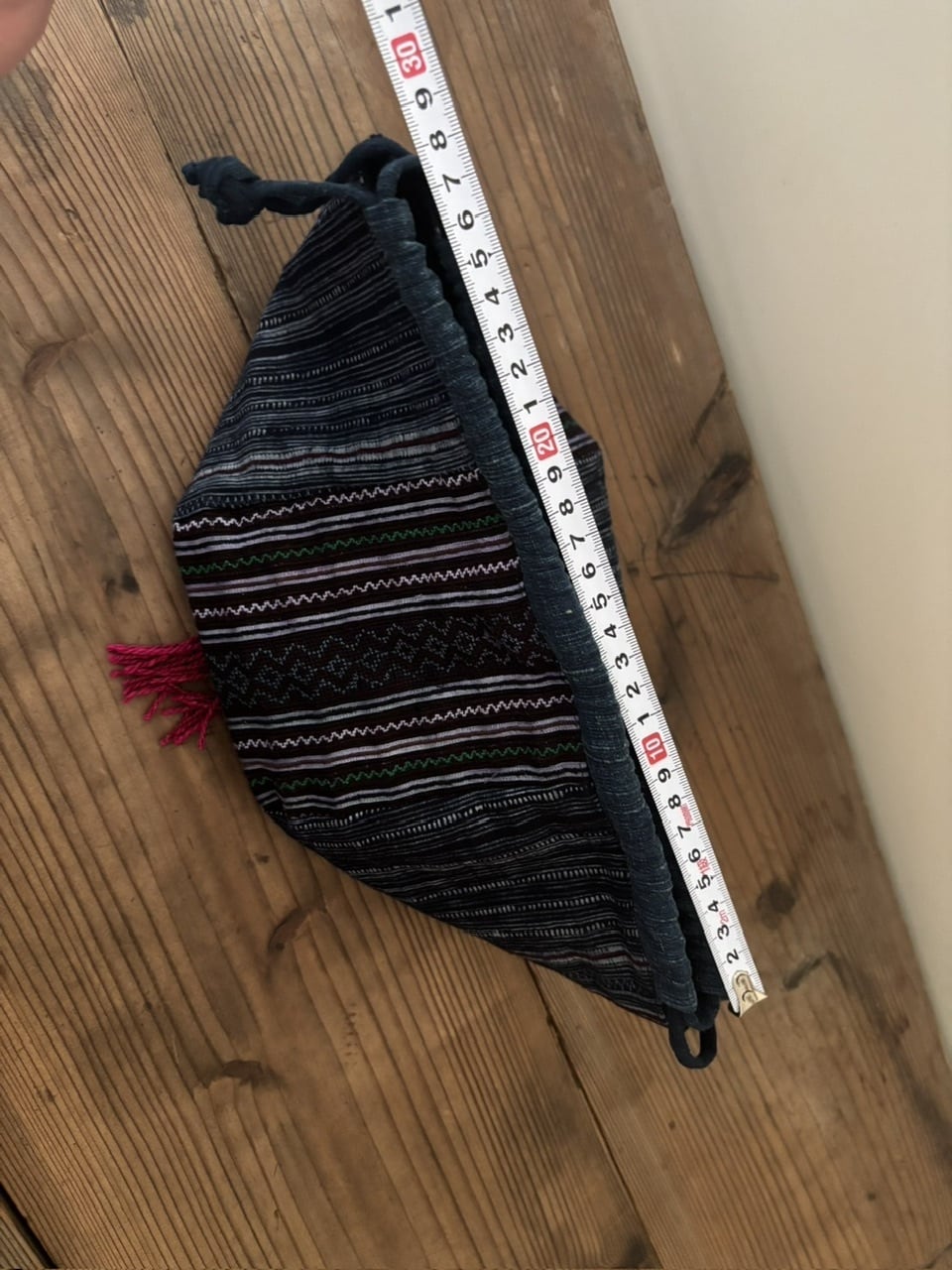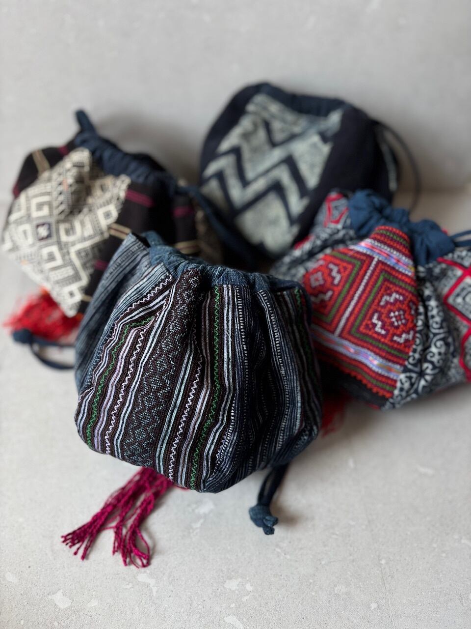 このバックに使用している生地は少数民族の村より直接買い付け、仕入れたものをオリジナルでリメイクしました。
