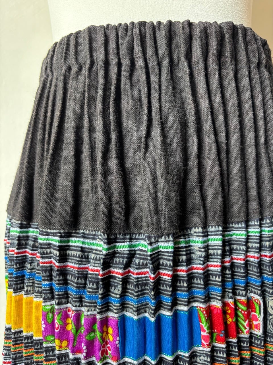 一枚のモン族の巻きスカートを上下2段に組合せています。