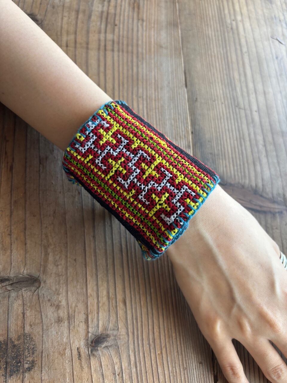 山岳民族の伝統布をリメイクしたしたハンドメイドバングルです。
