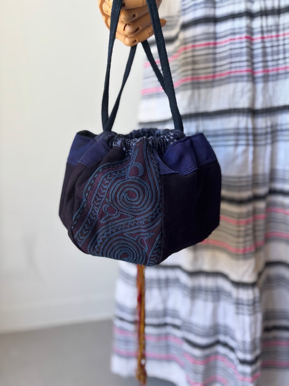 このバックに使用している生地は少数民族の村より直接買い付け、仕入れたものをオリジナルでリメイクしました。