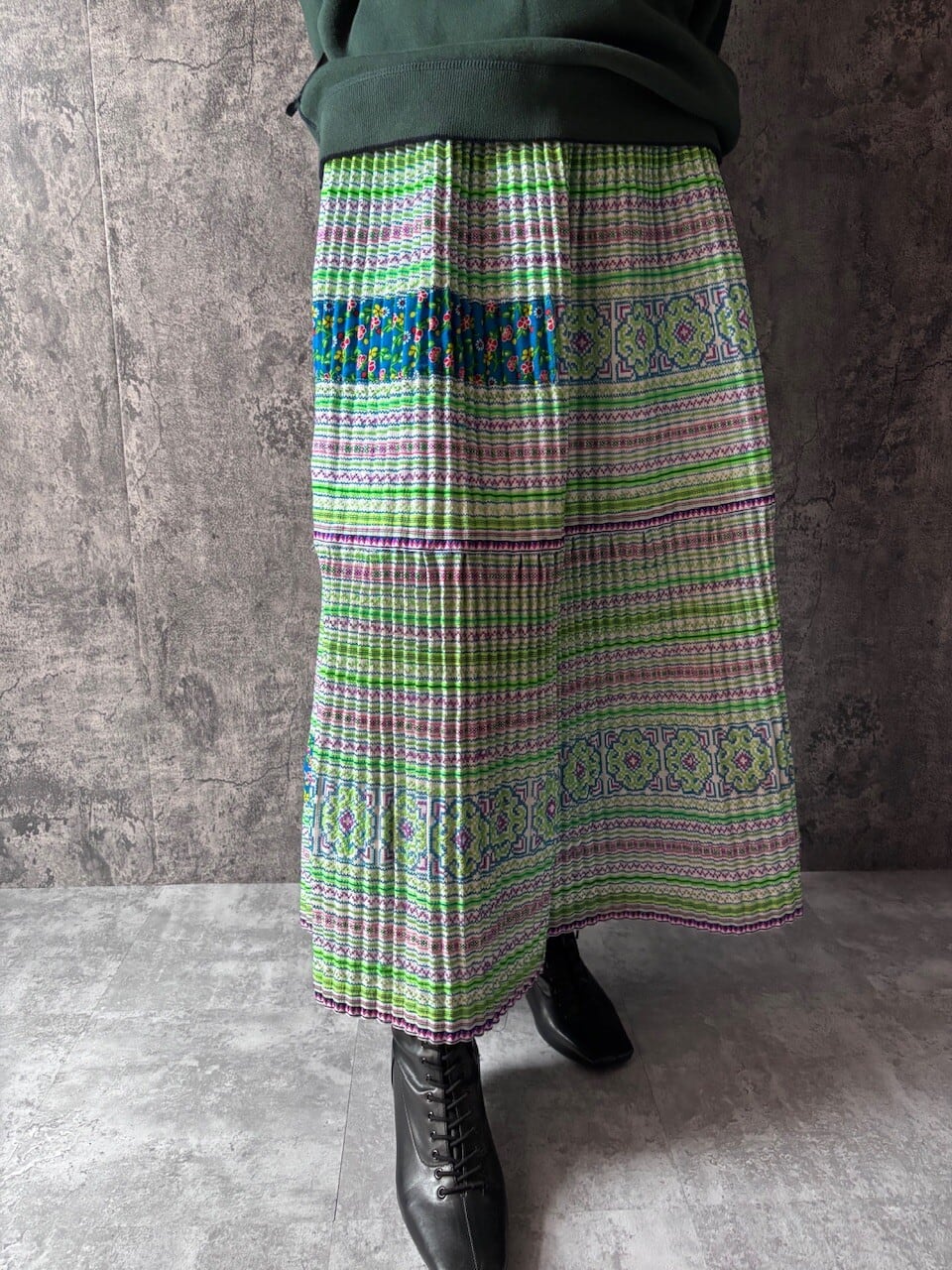 モン族の巻きスカートをリメイクした、ロングスカートです。