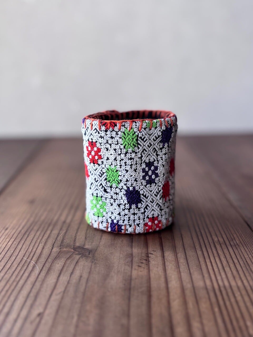 山岳民族の伝統布をリメイクしたしたハンドメイドバングルです。