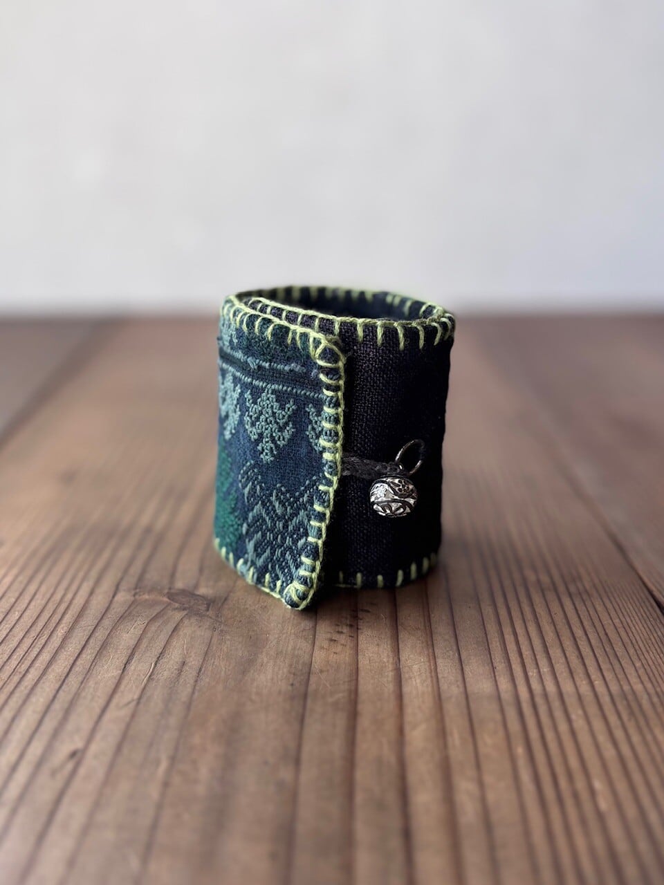 山岳民族の伝統布をリメイクしたしたハンドメイドバングルです。