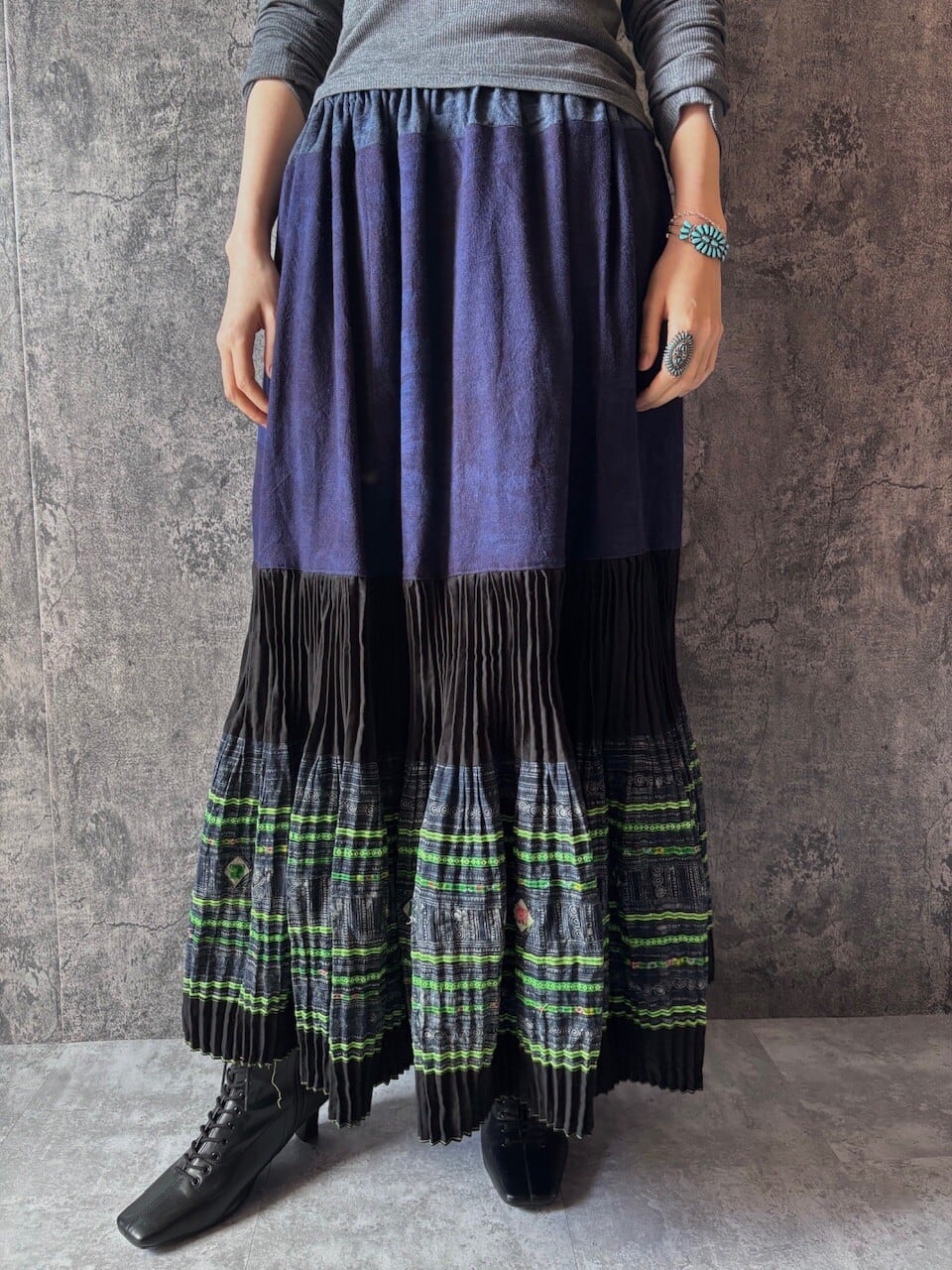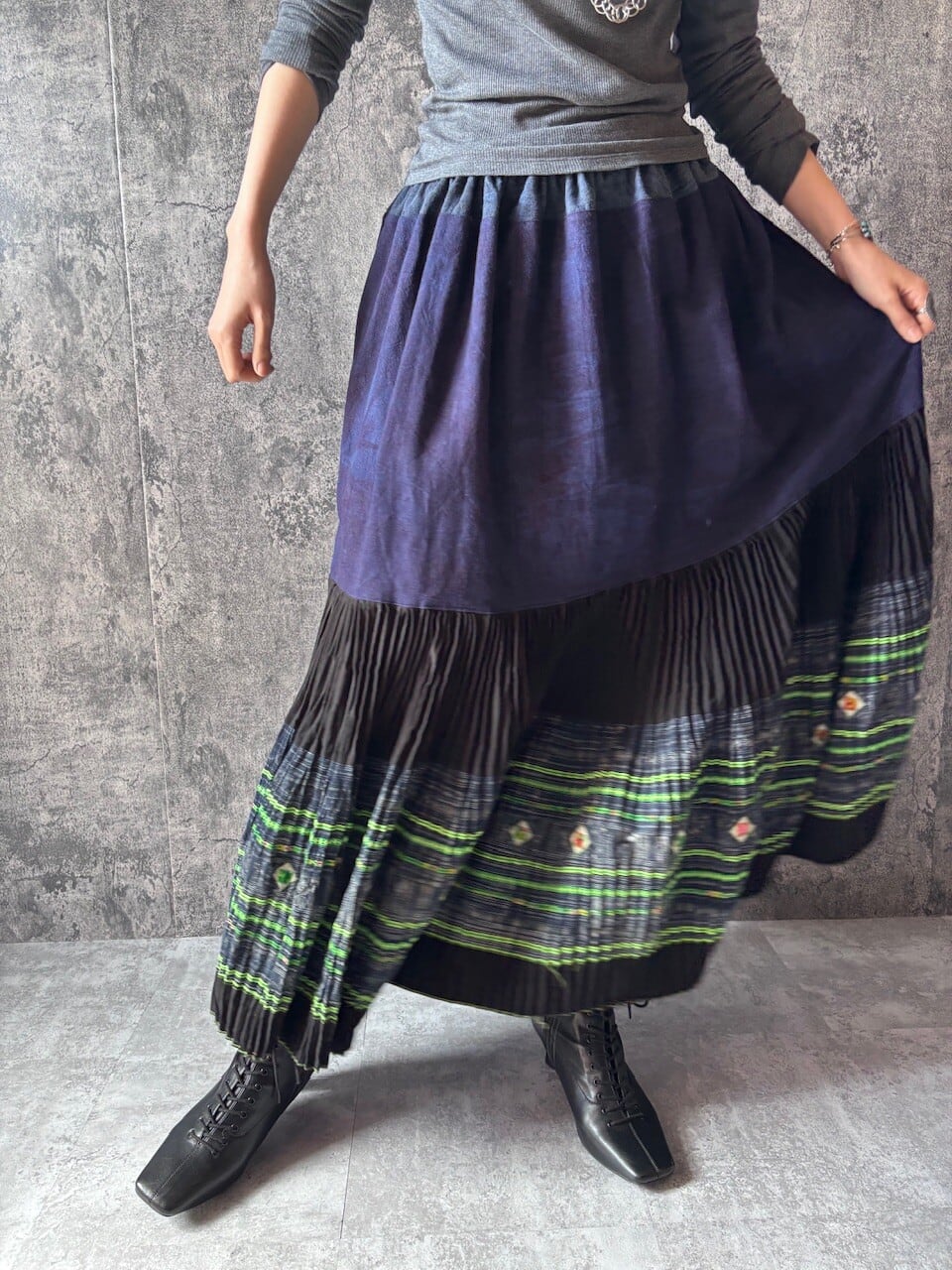 モン族の巻きスカートをリメイクした、ロングスカートです。