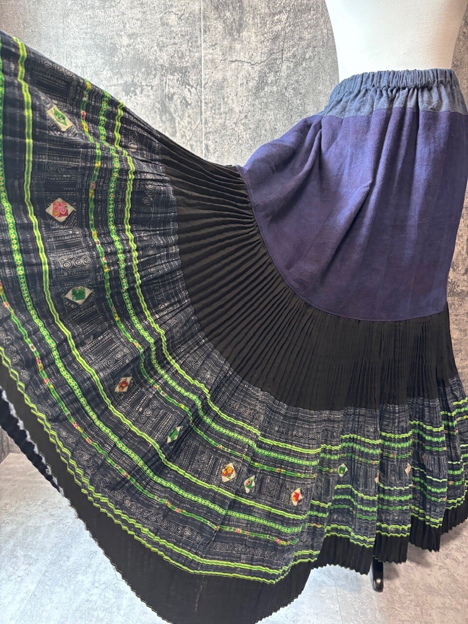モン族ならではの手描きのろうけつ染めが素敵なふんわり動きのあるスカートです。