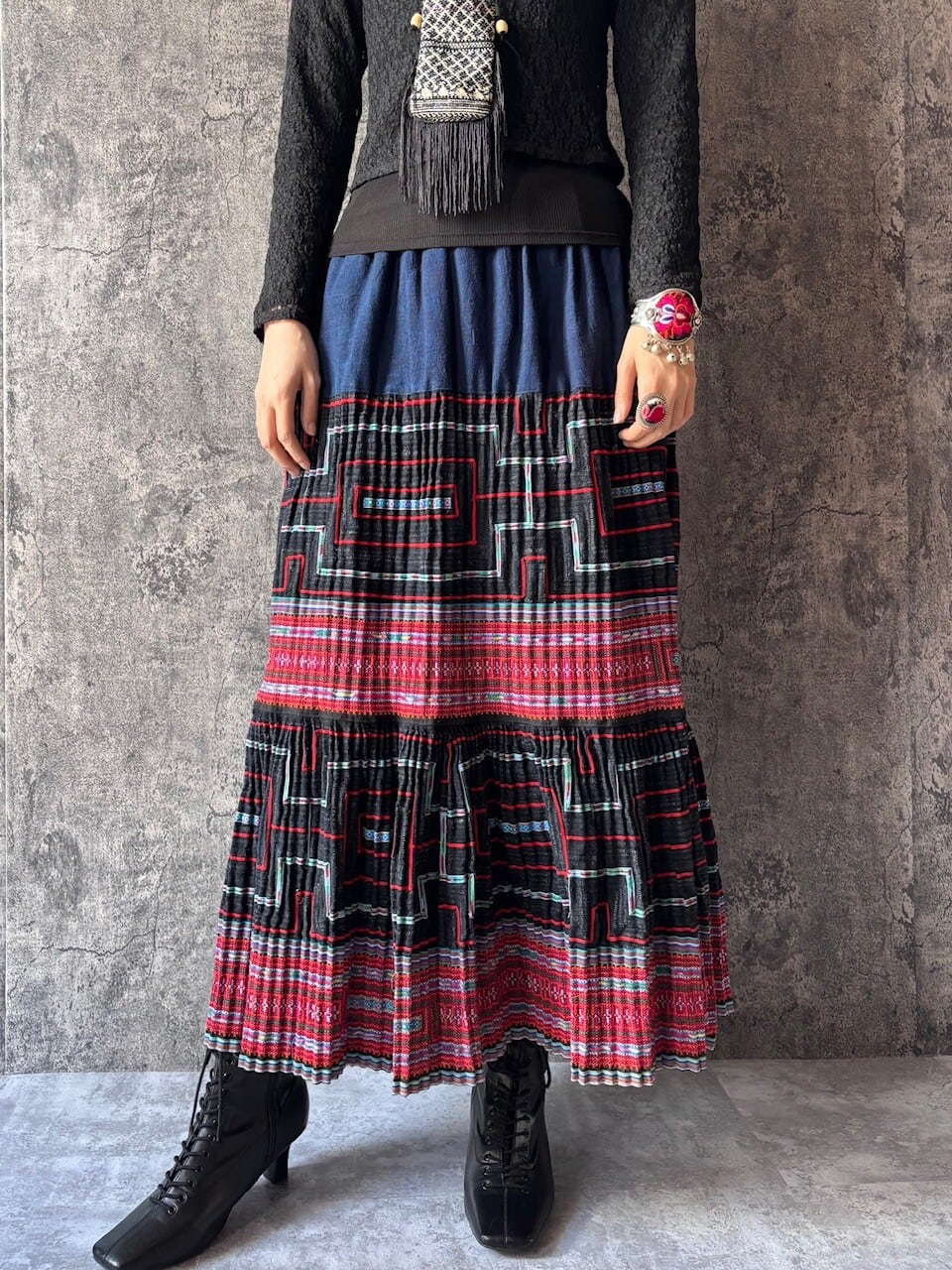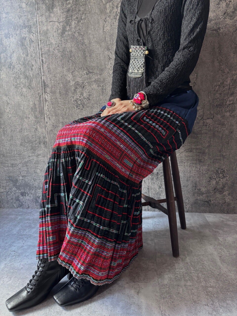 モン族の巻きスカートをリメイクした、ロングスカートです。