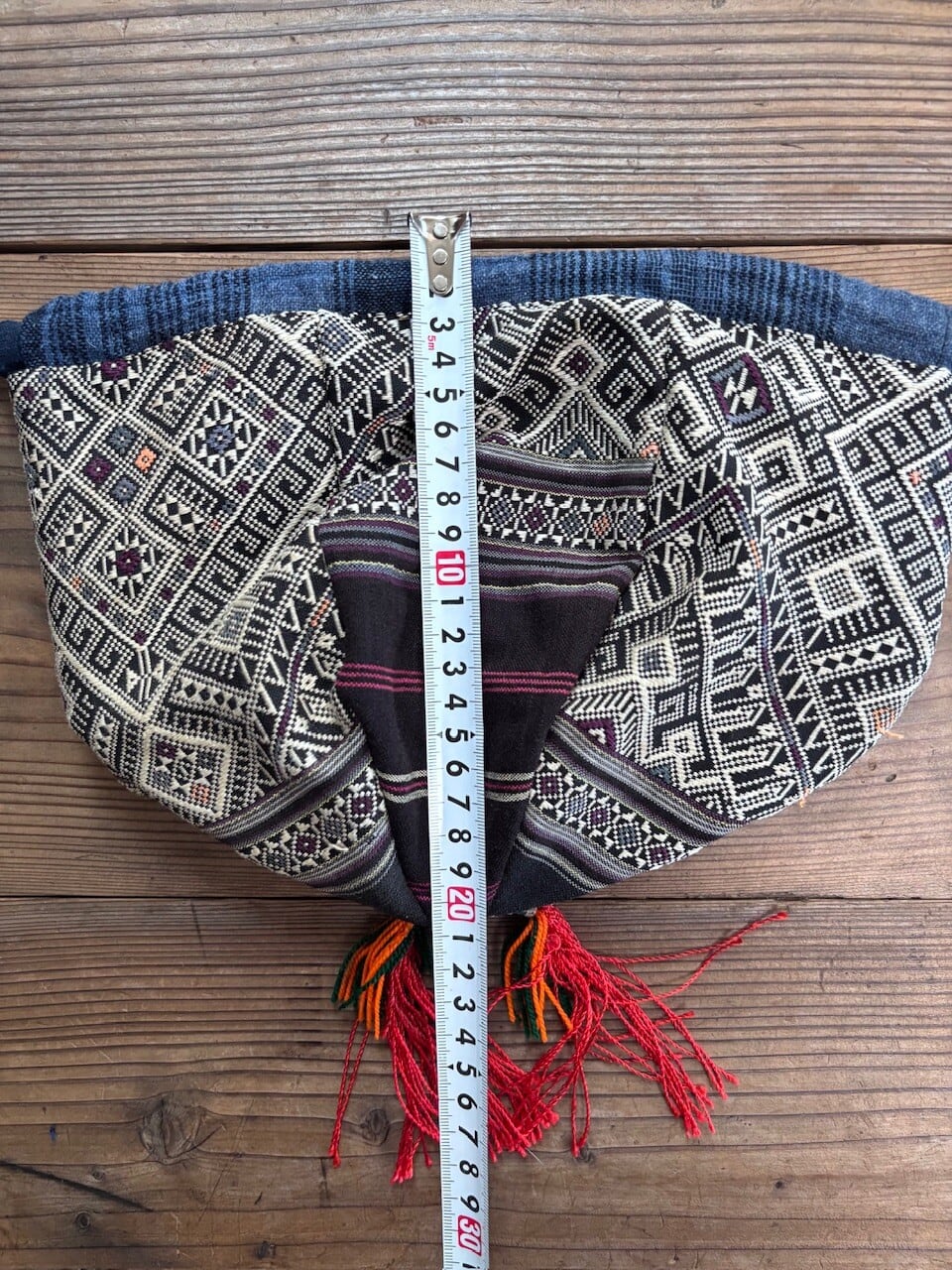 このバックに使用している生地は少数民族の村より直接買い付け、仕入れたものをオリジナルでリメイクしました。