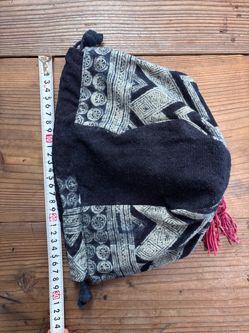 このバックに使用している生地は少数民族の村より直接買い付け、仕入れたものをオリジナルでリメイクしました。